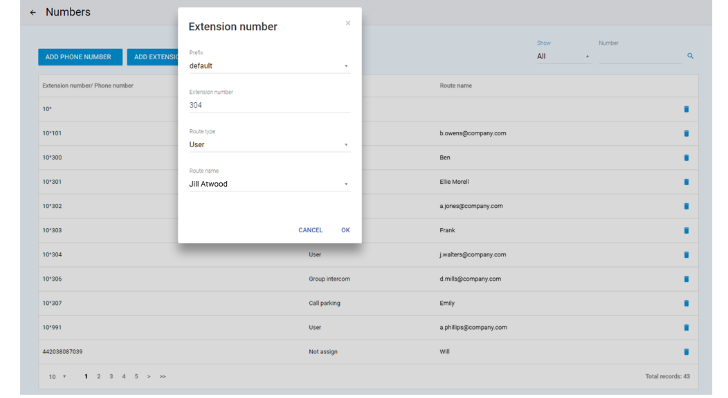 To assign an extension number, go to the Settings/Numbers menu.