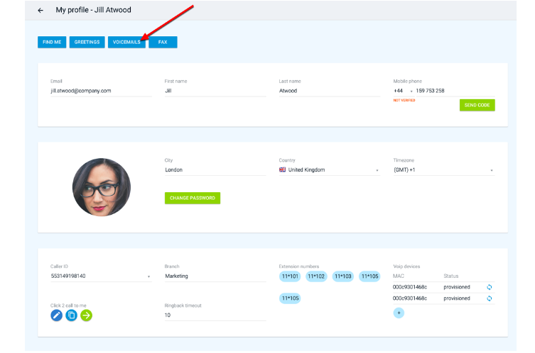Every company user can log in to his portal and record or upload his Voicemail or other IVRs for his personal use from the My Profile menu in his account.